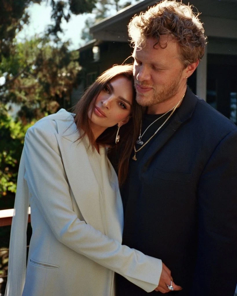 Antes de concurrir a la gala de los Critics´Choice Awards, Emrata se sacó fotos lookeada como novia junto a su marido, Sebastian Bear McClard.