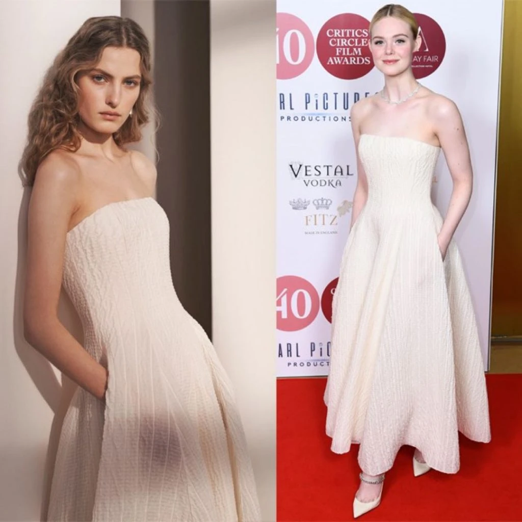 La actriz llamó la atención con un look nupcial sartorial. La última tendencia en red carpet son los vestidos de novia. En el caso de Elle Fanning, se trató de un diseño en color manteca, para una novia muy actual.