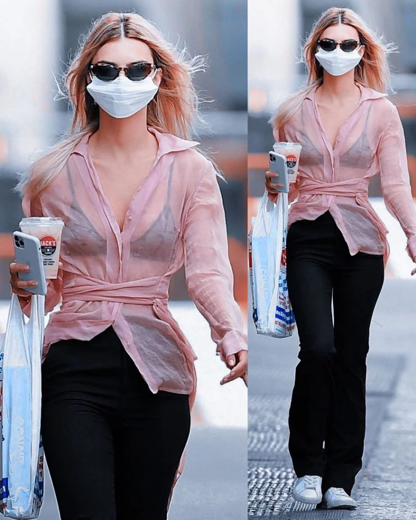 En los últimos días Emily Ratajkowski salió con bastante frecuencia a hacer compras o a pasear a Colombo, su perro. No se lookeó así nomás: apostó a la sensualidad y elegió vestir transparencias y ropa interior.