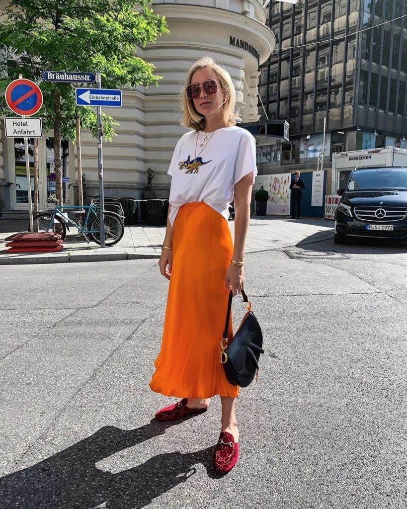 Las faldas serán satinadas, fluídas, con largo midi y en un sinfín de colores.