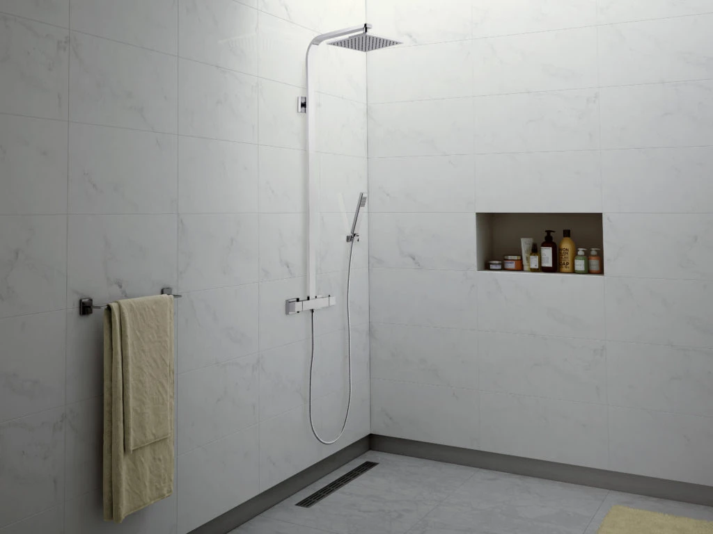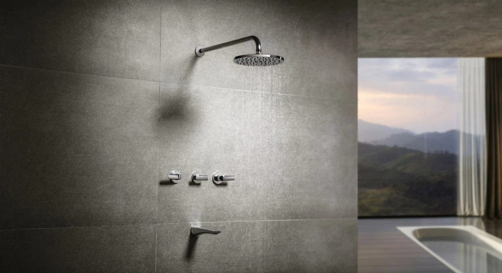 La línea Dominic forma parte de los diseños de vanguardia de FV. Líneas geométricas, rectas y formas puras y un estilo para quienes buscan algo diferente y original para un baño moderno. Trae la opción de dos tipos de volantes: en cruz y lever.