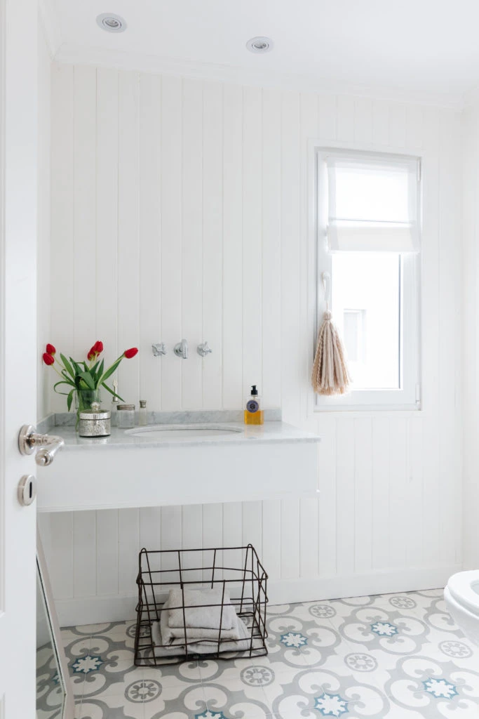 El lema de esta tendencia es "verano eterno", baños en donde la protagonista es la luz. Ventanas amplias, iluminación cálida y colores pasteles son las claves para hacer del baño un espacio vívido y alegre. Los accesorios que suman: pequeños estantes con decoraciones (¡animate a jugar con pequeñas esculturas o necessaires cancheros!), plantas tipo enredaderas y una grifería sutil.