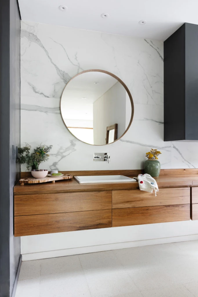 Aunque requiere una mayor inversión, elegir mármol o cerámica es una apuesta segura. Revestir las paredes o sumar toques de piedra, le da al baño un aire elegante y moderno. Se combina con accesorios que también deben ser protagonistas, para darle una impronta señorial a este espacio de la casa.