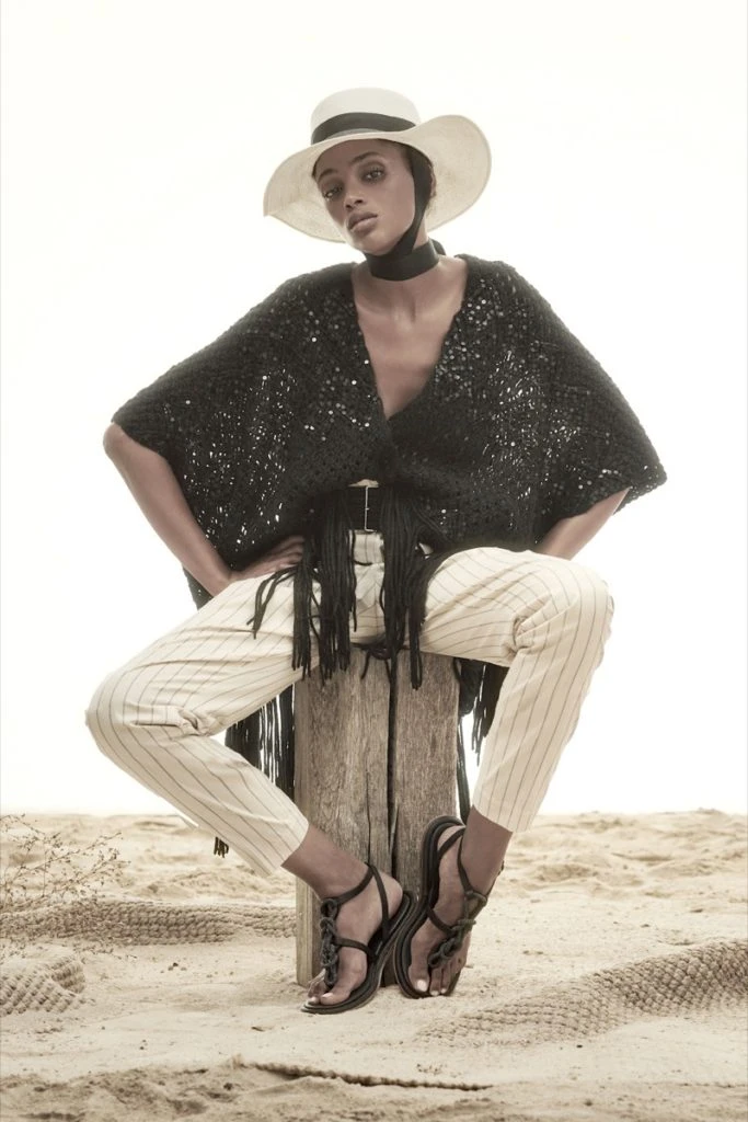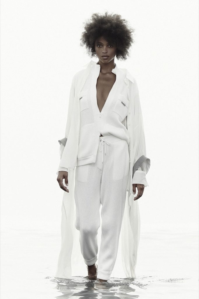 La colección se llama "Pure Spirit" (Espíritu Puro), con propuestas que transmiten una sensación de ligereza y frescura a través de pantalones masculinos bien relajados en lino natural, que los combinó con brillos metálicos aportando luz al conjunto.