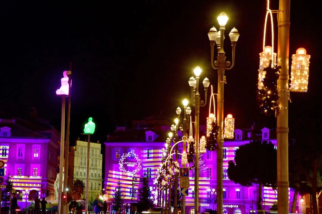 Y a su alrededor, todas las plazas y calles y los barrios de la ciudad se iluminan y decoran, especialmente el paseo de la Promenade des Anglais junto al mar.
