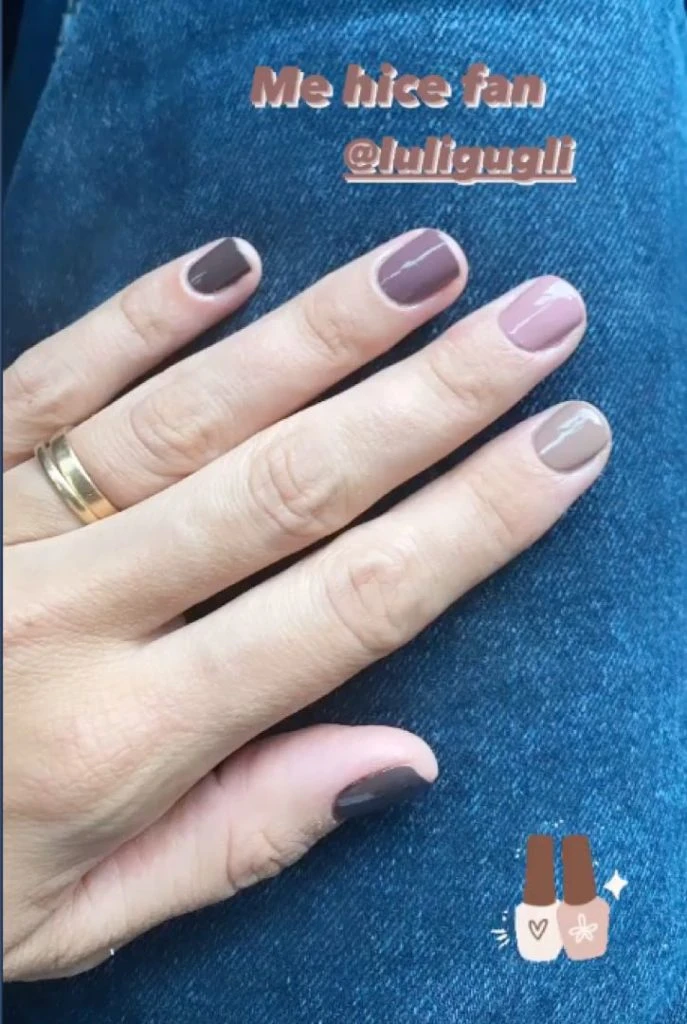 La modelo y conductora se compartió una imagen de sus uñas recién terminadas, con una de las tendencias de esmaltado de este 2021. La misma consiste en elegir un color y usar varios tonos diferentes, uno en cada uña.