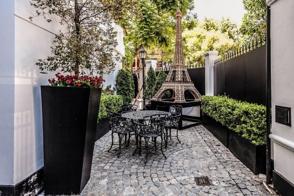 Garaje para cuatro autos, escritorio, sala de visitas, toilettes, patios, livings con chimenea y biblioteca, cinco dormitorios, terraza y hasta un departamento para el personal o para invitados, son algunas de las comodidades que componen a esta lujosa casa de estilo francés.