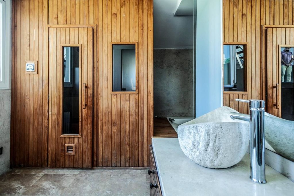 Garaje para cinco autos, despensa, bodega, terraza con piscina y vistas impresionantes, jardines repletos de vegetación, living de doble altura, cuatro dormitorios en suite, baños con hidromasaje, sauna y lavadero son algunas de las comodidades de lujo que ofrece esta casa moderna.