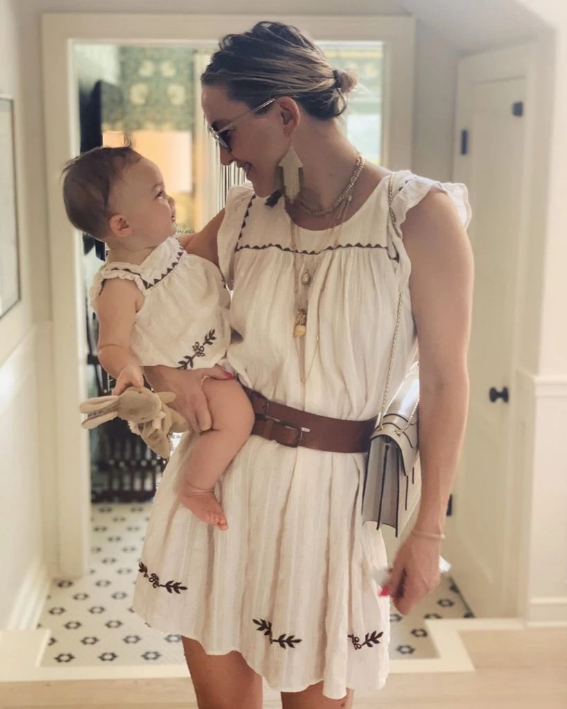 Sin embargo, en su cuenta de Instagram Kate Hudson subió dos fotos llevando en brazos a su beba en la que se las ve a las dos con vestidos idénticos.