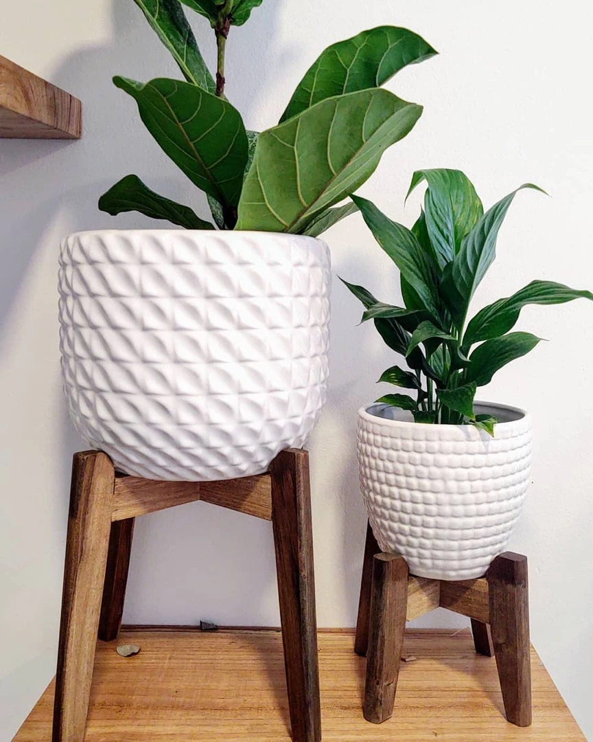 Las macetas con piecero o con base son ideales para colocar varias a diferentes alturas y así hacer composiciones entre varias plantas.