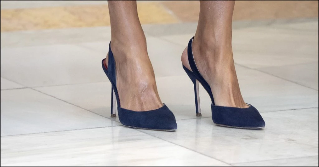 Letizia llevó este look en sus viajes oficiales a París y Estados Unidos en 2015 y en Londres en 2017. Esta vez lo combinó con zapatos de taco, en punta y sin talón, de la misma firma.