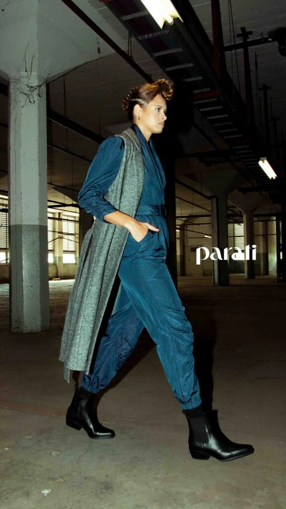 Chaleco de paño de lana mezcla y mono de siré. @claraibarguren. Botinetas de cuero @sofi_martire