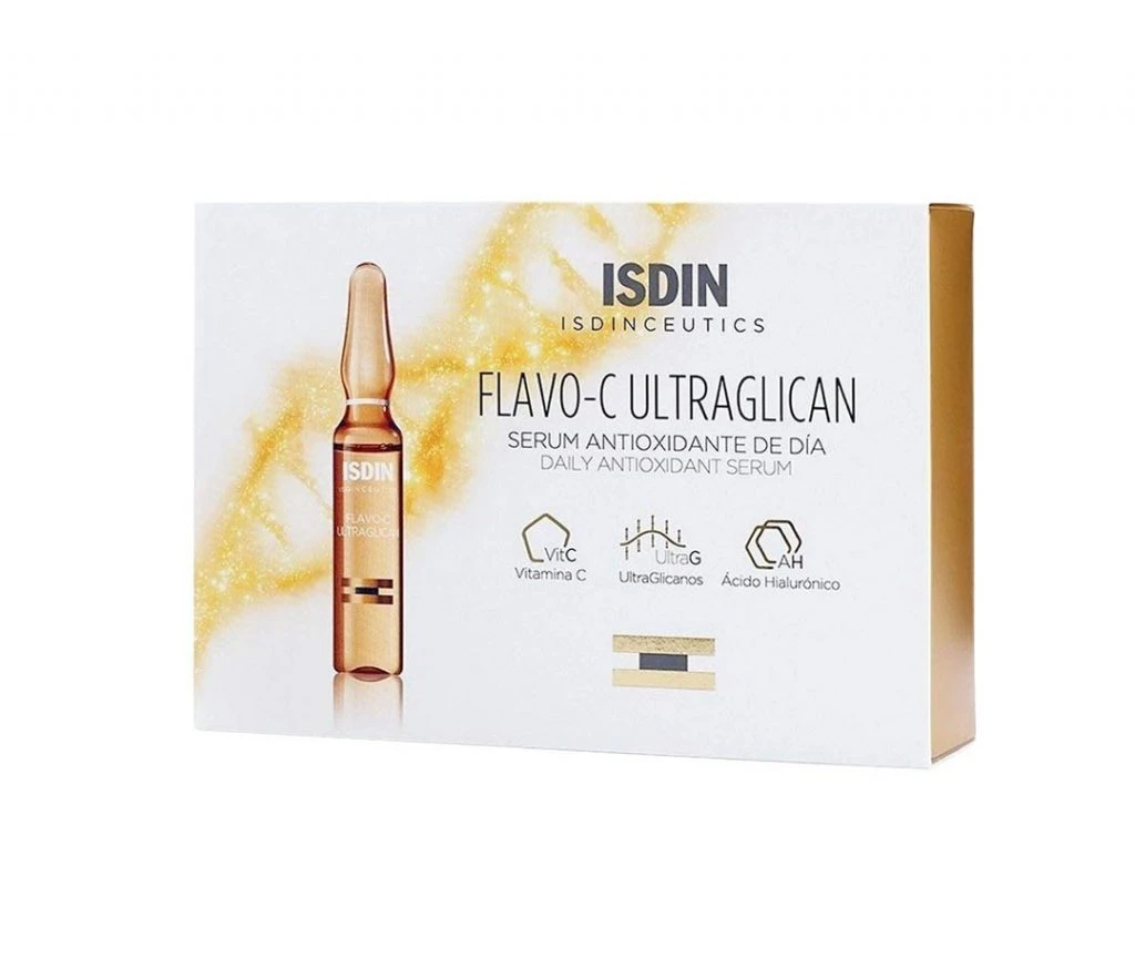 - 5. Isdinceutics Flavo C Ultraflican Antiedad 30 Ampollas. Avanzada asociación de antioxidantes e hidratantes. Solución facial en ampollas con una avanzada asociación de antioxidantes e hidratantes que actúa sobre la pérdida de firmeza y sobre las líneas finas de expresión. Ayuda a recuperar la luminosidad en la piel, facilita la recuperación de la elasticidad y previene los primeros signos de envejecimiento.