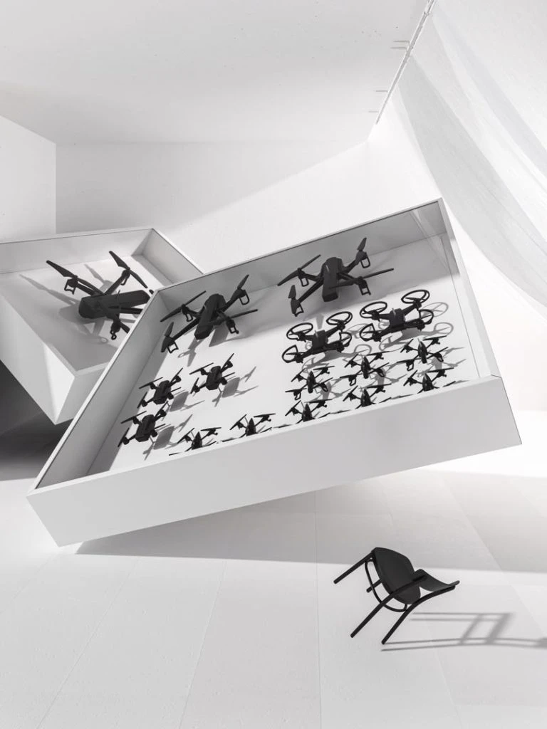 Bastian Bischoff y Per Emanuelsson son la dupla conocida como Human since 1982. Y ellos crearon un objeto decorativo usando drones que convirtieron en mariposas: una visión poética y de un símbolo de la tecnología actual.