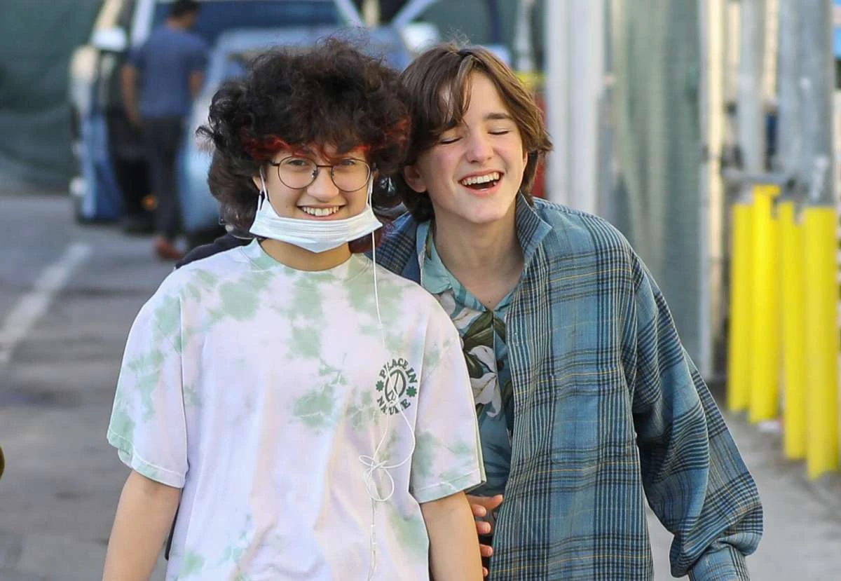 Pampita llevó el look ideal para un acto escolar: mini negra, cinturón XL y botas texanas