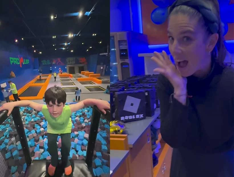 Pampita llevó el look ideal para un acto escolar: mini negra, cinturón XL y botas texanas -