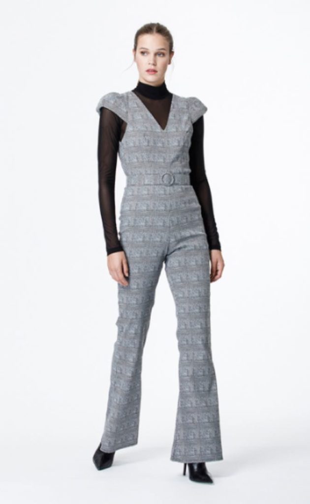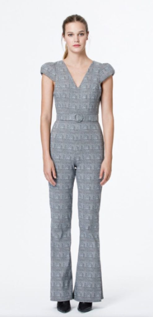 Se trata del jumpsuit Myrocarpus, un mono diseñado en Príncipe de Gales, con escote V y cinto forrado. Tiene la dualidad de poder usarse con top de mangas largas transparentes en negro, como lo usó Fabiola; o sin el top, como lo llevó Vero Lozano en uno de sus programas. Este jumpsuit cuesta 26.000 pesos pero está agotado en el sitio online.