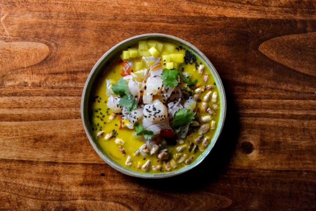 - 4. En un bowl, mezclar la pesca con la leche de tigre y dejar marinar por 5 minutos.