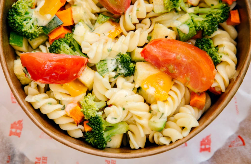 - 5. Salpimentar la pasta y mezclar con los tomates cherry cortados a la mitad, las aceitunas negras también al medio, las alcaparras, las zanahorias asadas y las almendras previamente tostadas (pueden ser garrapiñadas para más crocancia y sabor).