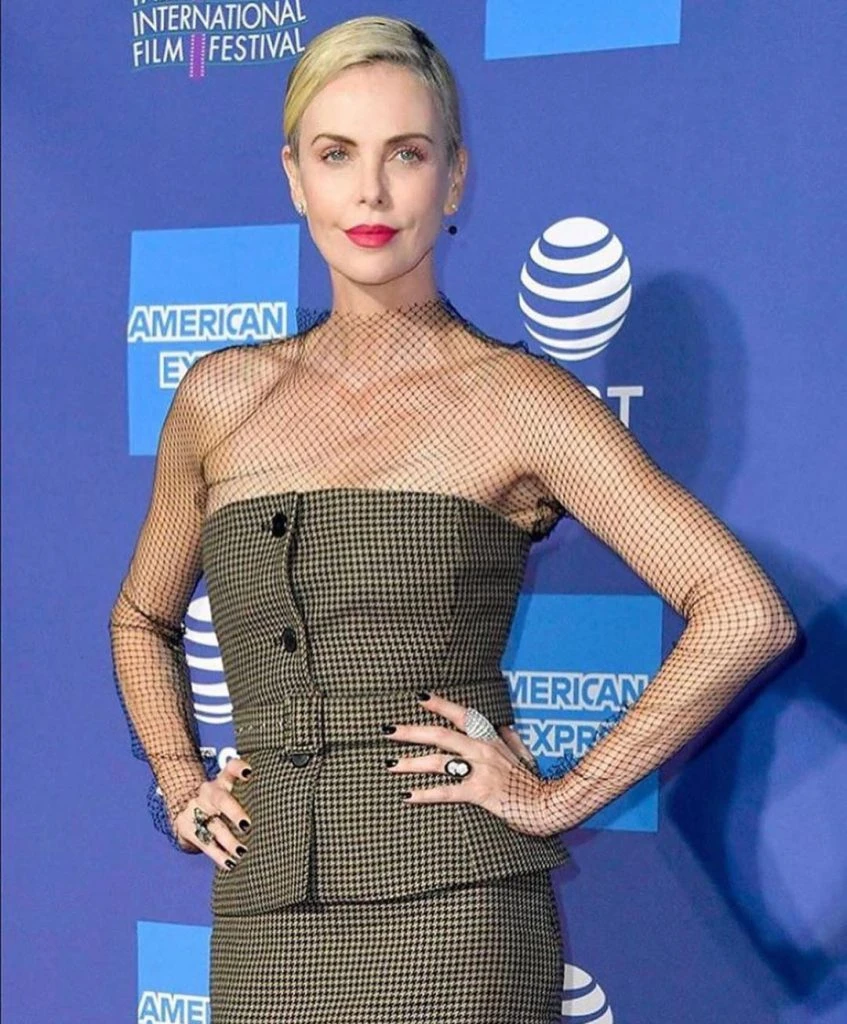 Charlize Theron superpuso su top y falda midi de Dior a una camiseta de red. Toda una lección de estilo, ya que superponer prendas es una de las tendencias que veremos en el invierno 2020.