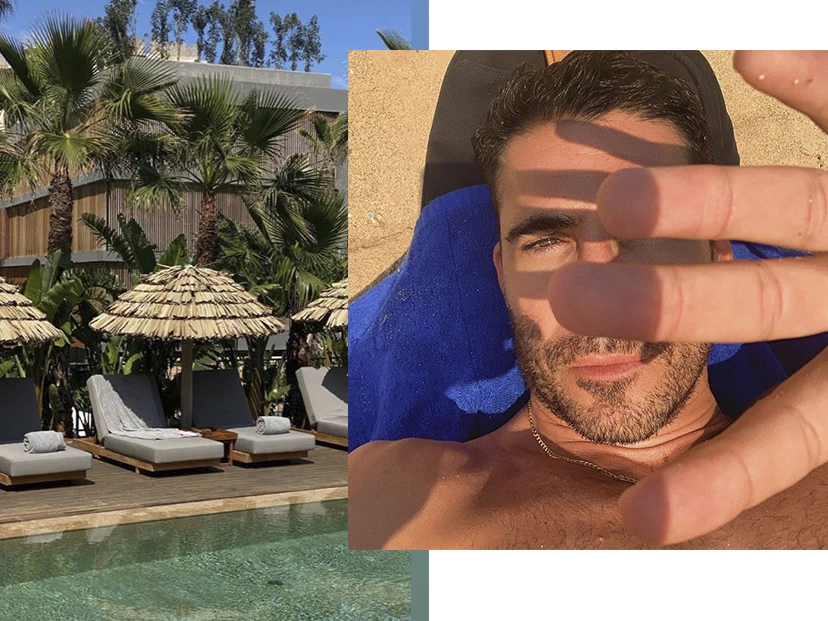 Atardeceres en la playa, tragos y amigos: todo lo que hace bien lo está disfrutando a pleno, mientras celebra las repercusiones internacionales de Sky Rojo, la serie de Netflix en la que interpreta a uno de los villanos, junto a Lali Espósito.