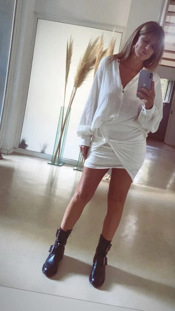 Ella completó el look con botas cortas (quizás poco conveniente para el calor de estos días). Si te inspiró este total look, podés combinarlo con zapatillas o sandalias.