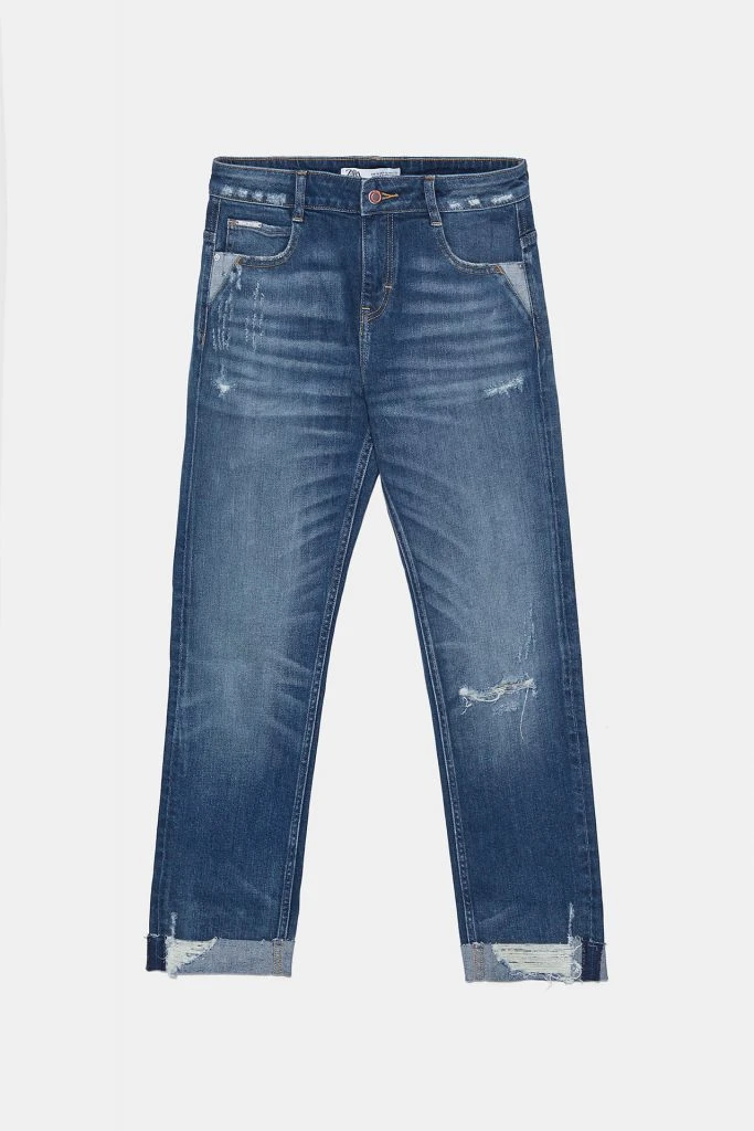 El jean es de tiro medio, con cinco bolsillos, efecto lavado, tiene detalles de rotos en la parte delantera y es de Zara (sale $ 3.990). El modelo es el Z1975 Bajo Vuelta. Ella lo combinó con una blusa negra de cuello bote y mangas abullonadas, de Anine Bing.