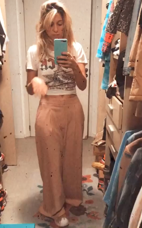 Es el caso de Flor Bertotti, que eligió una con inscripción rock en dorado y la combinó con un pantalón ancho en color camel.