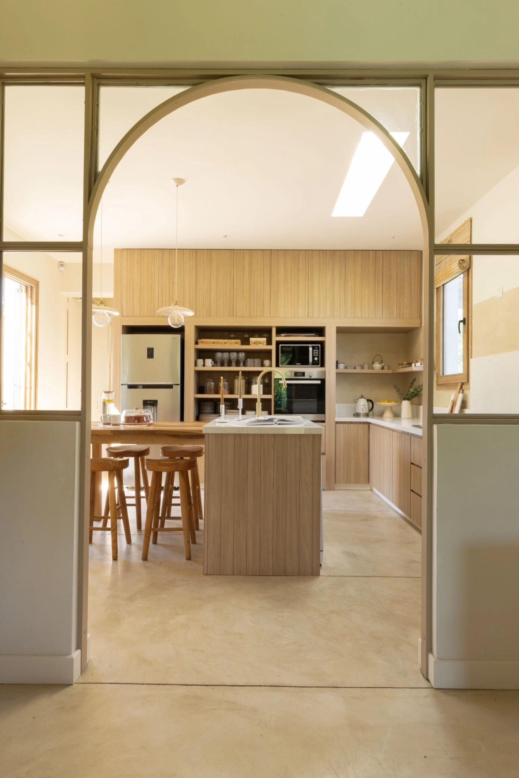 Una casa de fin de semana fue pensada desde cero como un espacio para el descanso. La arquitectura y el diseño interior -a cargo del las arquitectas Josefina Casaux Alsina y Milagros Silva Nieto, del estudio Cardinal- juega con la rusticidad, la simpleza y las líneas orgánicas del estilo mediterráneo.