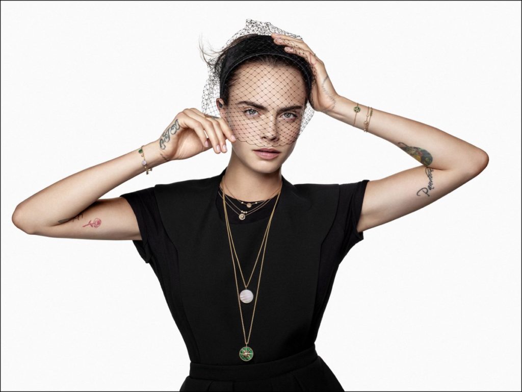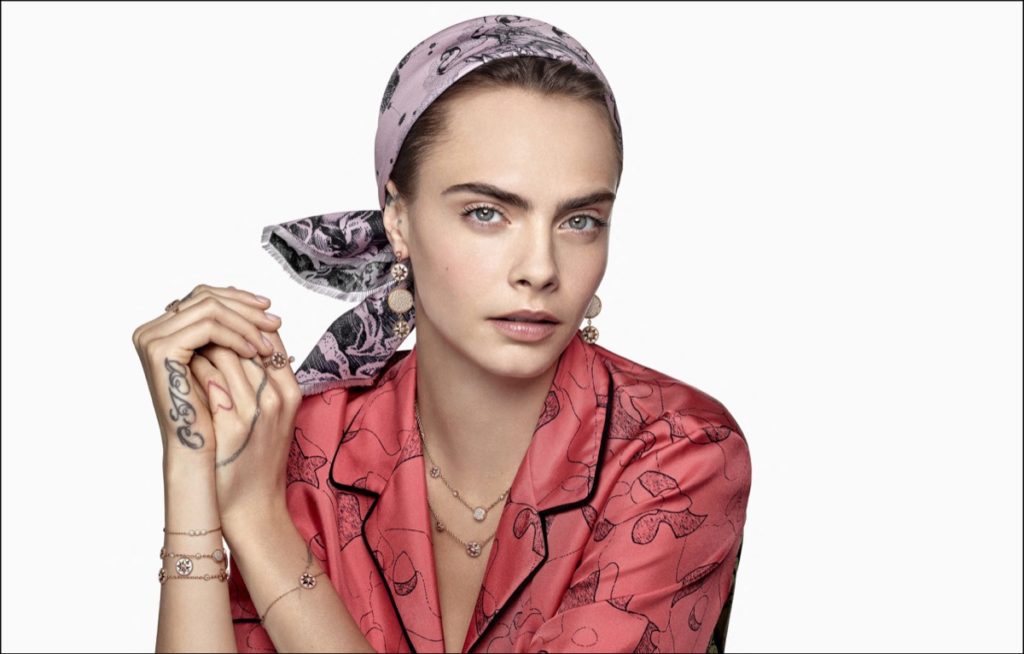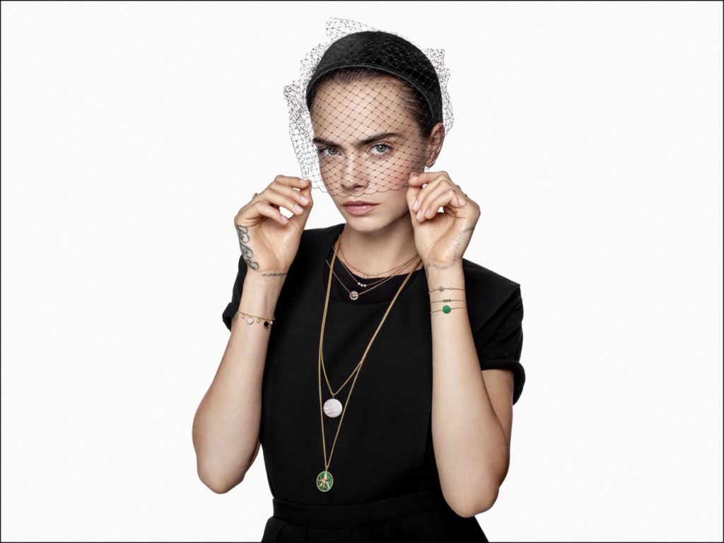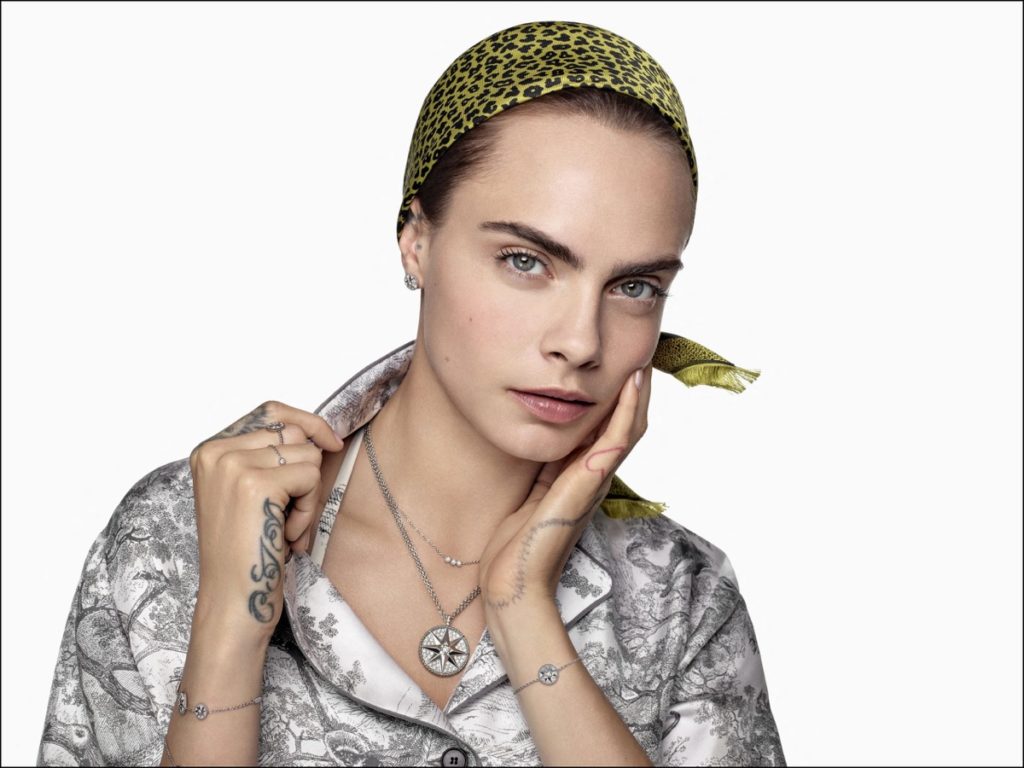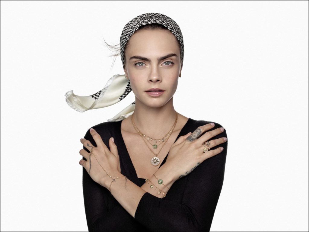 La actriz y modelo inglesa Cara Delevingne, es la musa de Dior Joaillerie, y posó para la nueva campaña que representa las emblemáticas colecciones Rose des Vents.