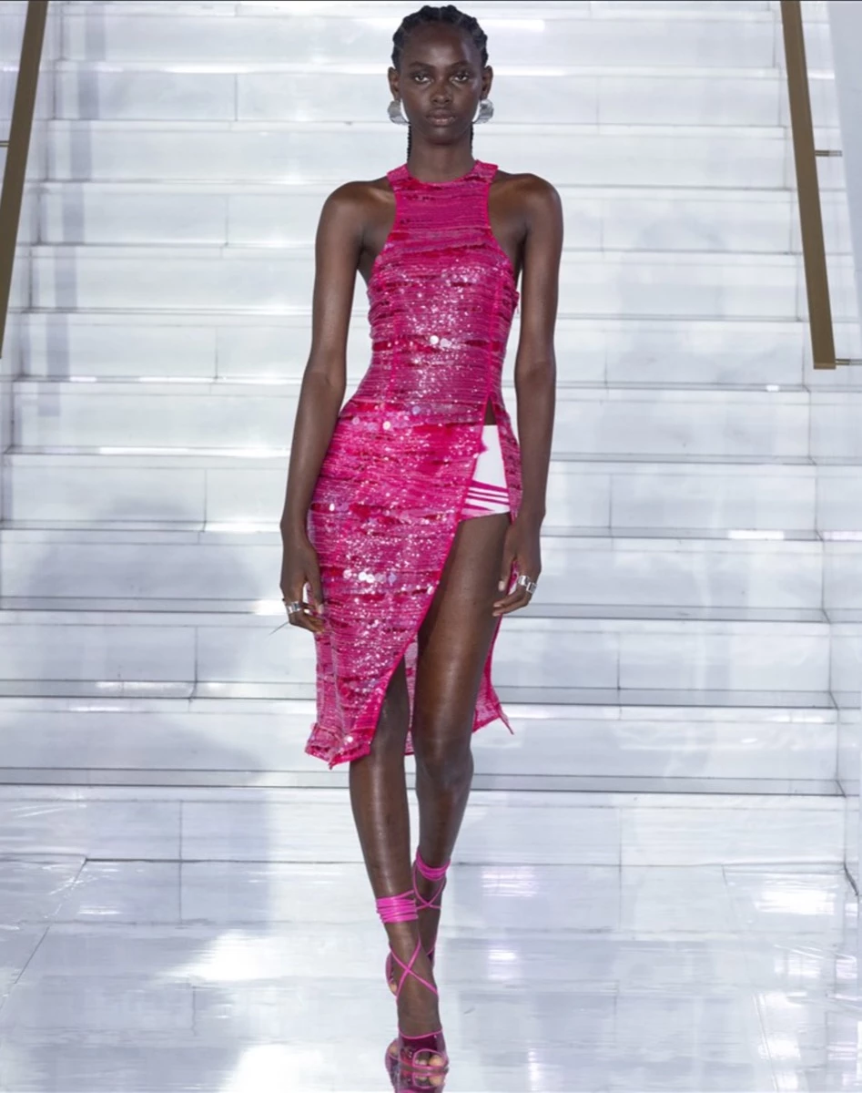 Y para eso, nada como el vestido lencero ligeramente transparente con pequeños destellos plateados.
