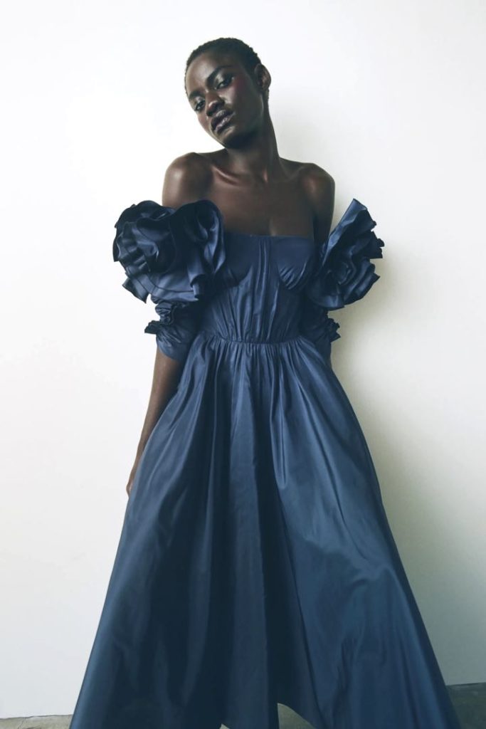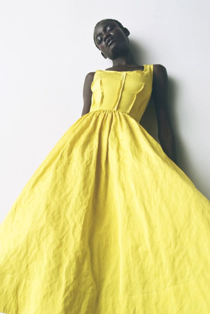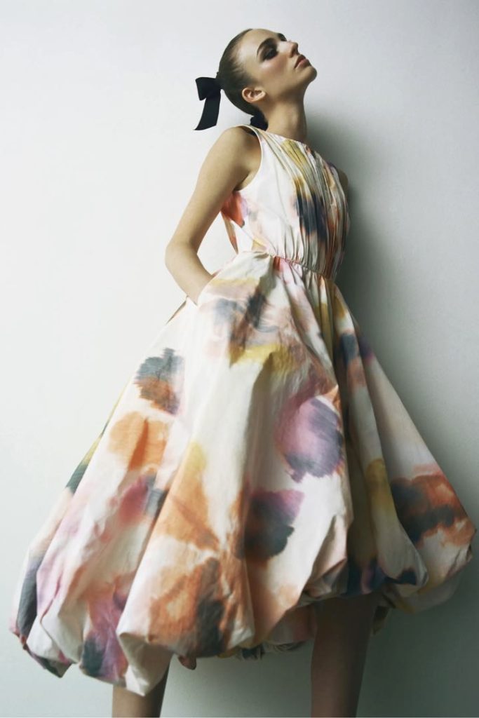 Los vestidos de cóctel todavía pueblan su colección, solo que ahora prefiere los satenes lavados y los tafetán de poliéster reciclado a los materiales más tradicionales.