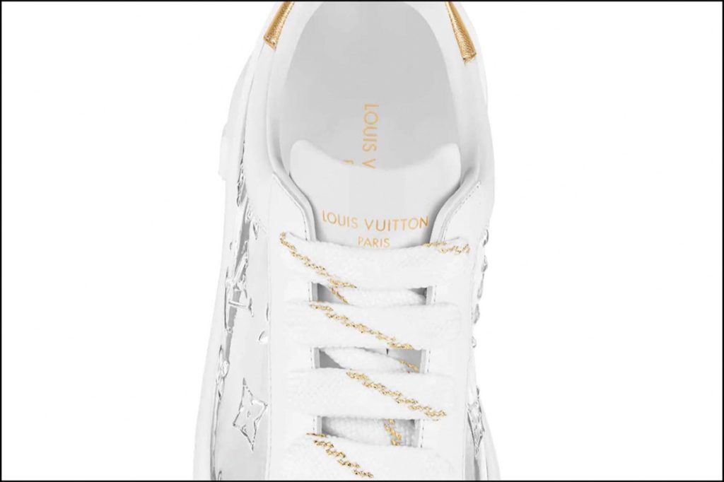 Las zapatillas vienen con una parte superior transparente con la marca LV grabada.