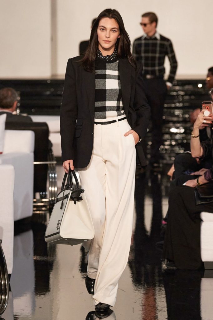 Lauren mostró una colección que coincidía con su entorno modernista: predominantemente en blanco y negro, e hizo lugar para el encanto clásico y atemporal de la vestimenta monocromática, ocasionalmente interrumpida por toques de rojo.