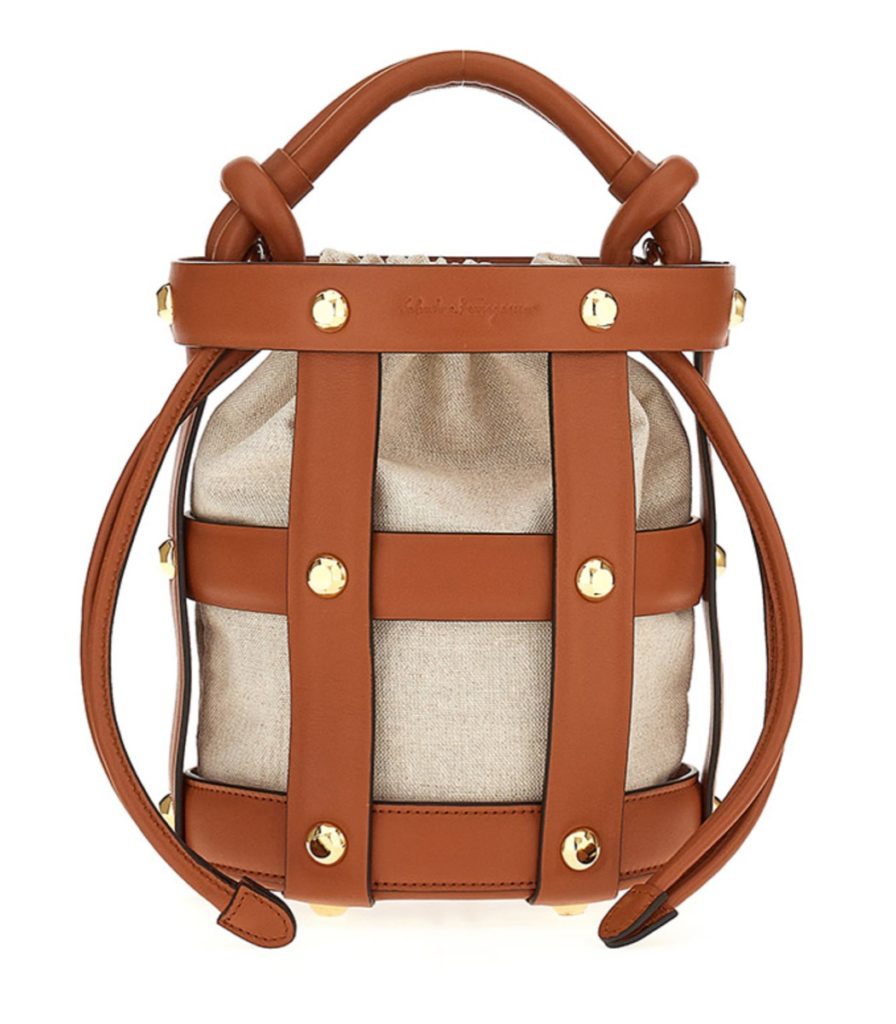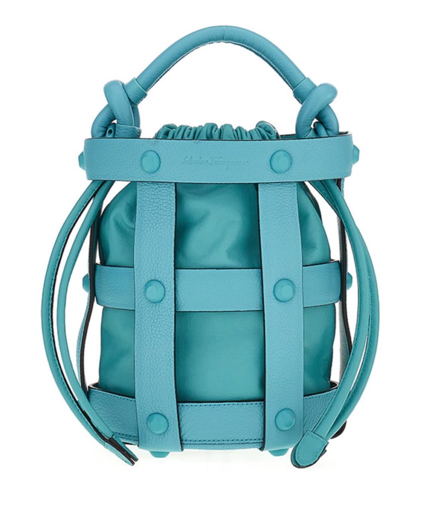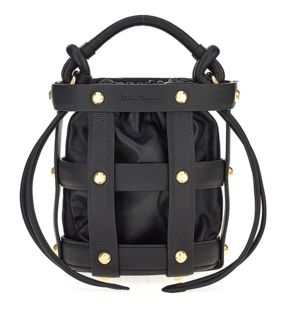 Salvatore Ferragamo presenta el Ferragamo Cage Bag, inspirada en la famosa sandalia Kimo de la marca (creada en 1951) que presentaba una parte superior de cuero tejido con un calcetín intercambiable de cuero o seda.