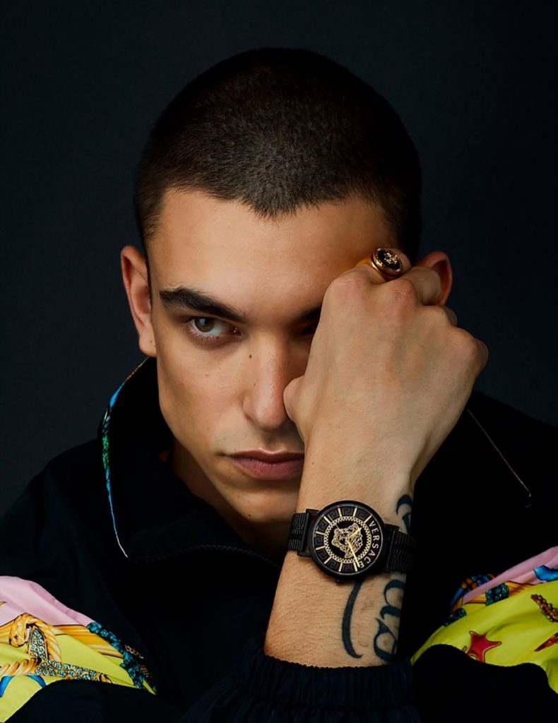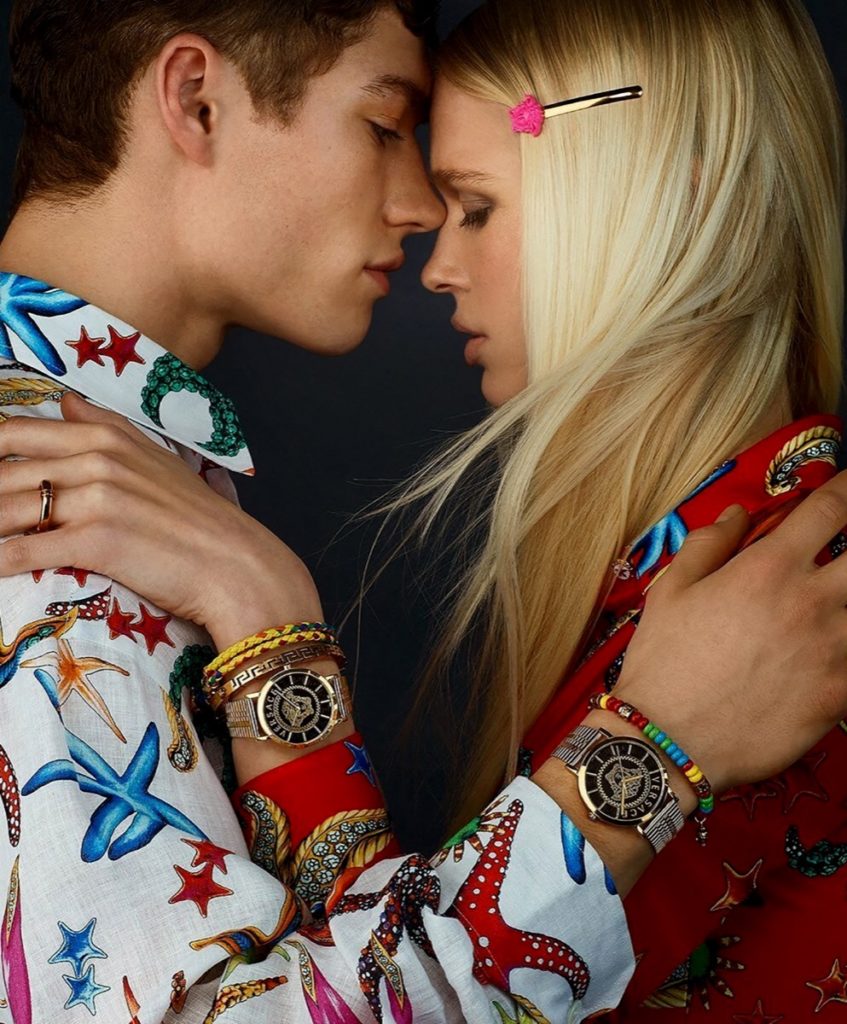 Los relojes se acompañan co prendas llamativas y propias de Donatella Versace.