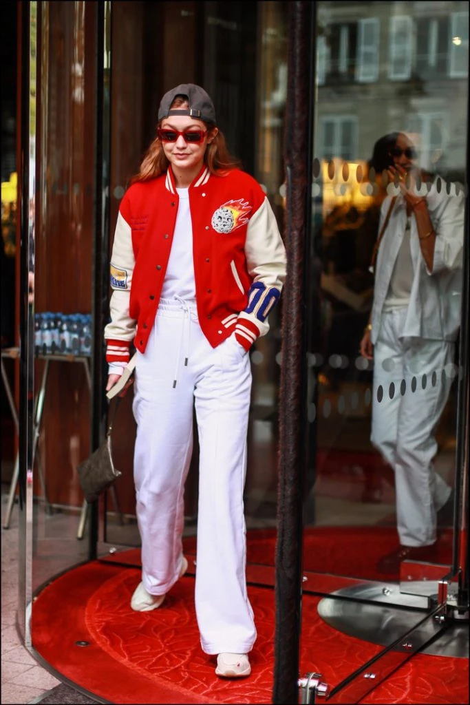 Look sporty chic para el fin de semana. La campera college le da un toque fashionista a este total look blanco.