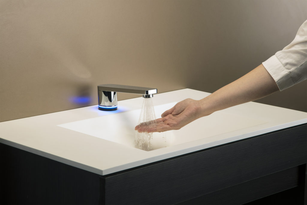 FV desarrolló griferías con control electrónico de apertura y cierre. A partir de sensores, se detecta automáticamente la presencia del usuario, tanto para activar la salida de agua como para cortar el flujo en un tiempo determinado. Esto, además de ser práctico y liberarte las manos, te permite ahorrar el consumo de agua, ¡entre un 30% y un 70%, dependiendo del modelo!