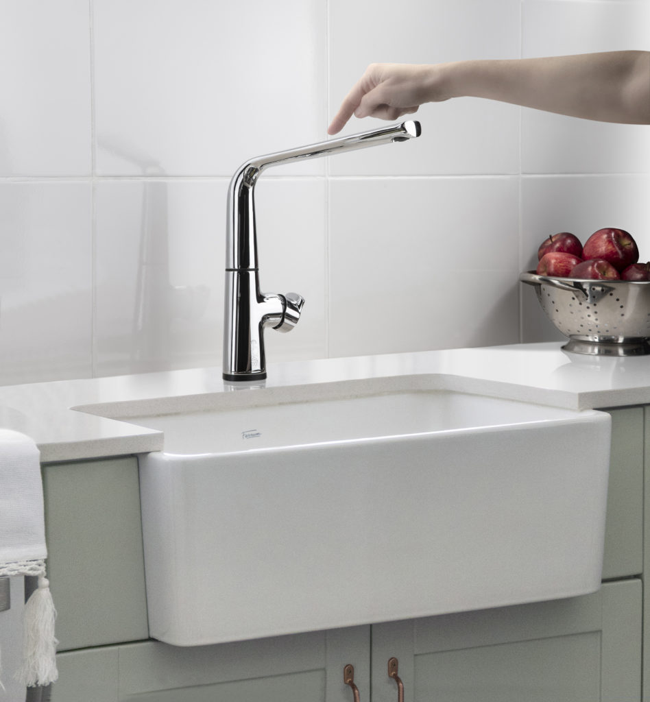 Por eso, teniendo en cuenta esto, nos pusimos a buscar las mejores alternativas en grifos, que no solo decoraran nuestros ambientes, sino que también velaran por nuestra higiene y seguridad. Y la alternativa que encontramos son los llamados "productos de menor contacto". ¿Cómo funcionan? A través de sensores que activan las funciones de los grifos automáticamente y que buscan reducir al mínimo el contacto entre el usuario y el producto. Esto, más allá de no tener que tocar ninguna superficie, facilita la impieza diaria.