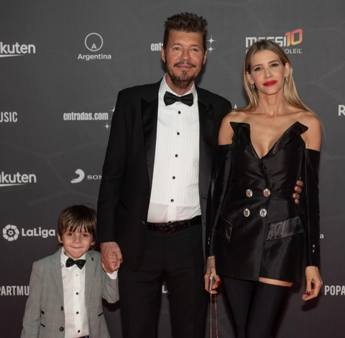 Guillermina posó feliz junto a su marido, Marcelo Tinelli y el hijo que tienen en común, Lolo. Los dos acompañaron el look de ella vistiendo también esmoquin.