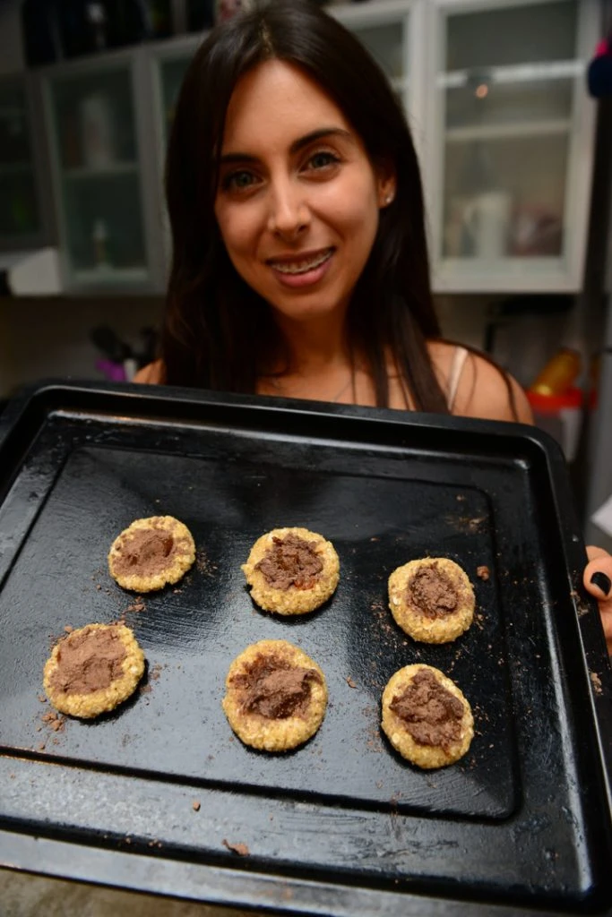 Primeor integrá en un bowl grande los ingredientes secos: la avena, la harina de almendra y el xilitol. Luego agregá el huevo y el extracto de vainilla. Mezclá bien y formá la masa con ayuda de tus manos. La técnica es hacer bolitas y después aplastarlas sobre una placa de horno previamente engrasada. Haceles un huequito en el medio y rellená con una mezcla de dulce de leche sin azucar con cacao en polvo (para lograr una consistencia más firme). Llevalas a un horno calentado a 180 grados durante 9 minutos. ¡Una delicia!