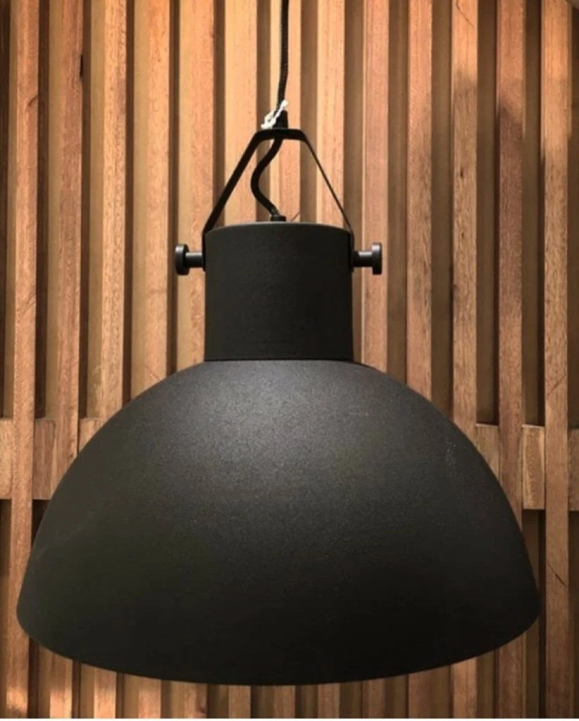 El hallazgo: Lámpara galponera de Concretoart (@concretoart_pasiones). Medidas: diámetro inferior 38 cm. Color: negro micro texturado mate y blanco mate. Precio: $ 3.200.