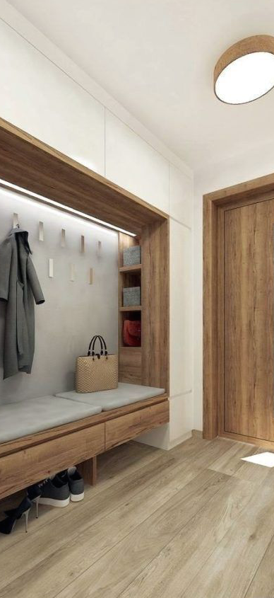 Otro recurso si no te gusta que los zapatos queden a la vista, es recurrir a gabinetes, cajoneras o zapateros. Es una solución que le suma orden y limpieza al hall de entrada.