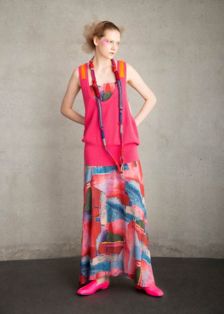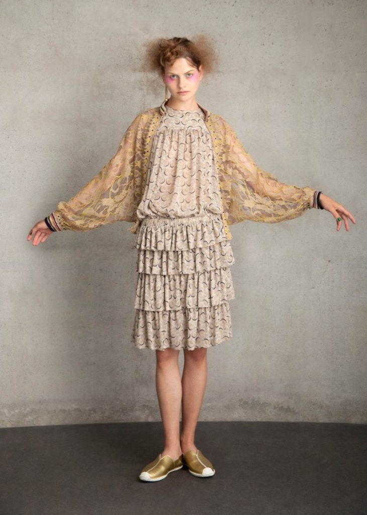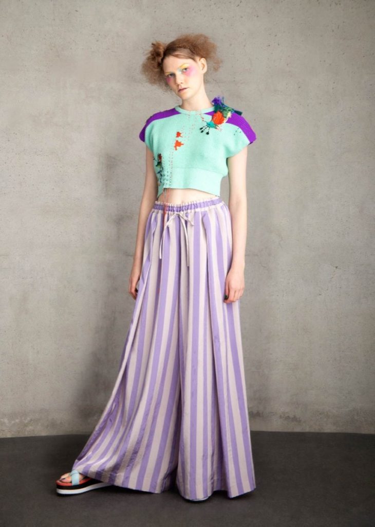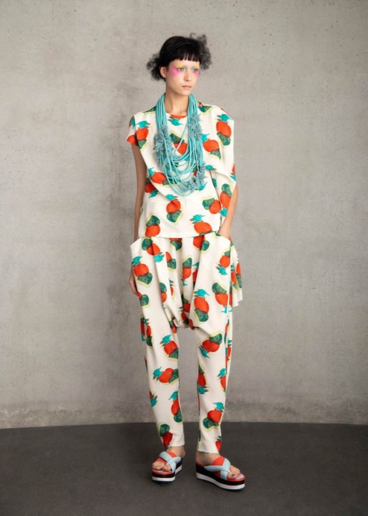 Esta temporada, la diseñadora representa la "fantasía de los habitantes surrealistas" con una colección lúdica, divertida y llena de humor. Con una paleta libre de colores, se resaltaron tops de gasa transparentes, lujosas chaquetas de encaje y remeras de algodón estampadas. Las estampas geométricas añaden una dosis de arte y diseño con gran impacto visual.