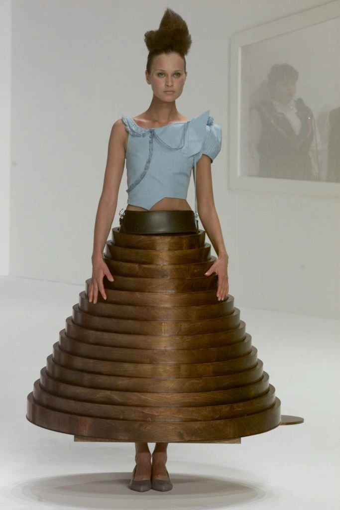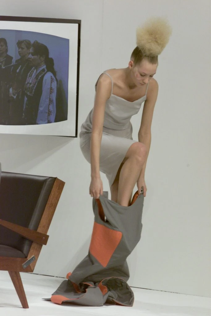 Aquí Chalayan abordó la cuestión del desplazamiento de las poblaciones en medio de la guerra de Kosovo en una diáspora aplicada a la moda, la arquitectura y también el arte.