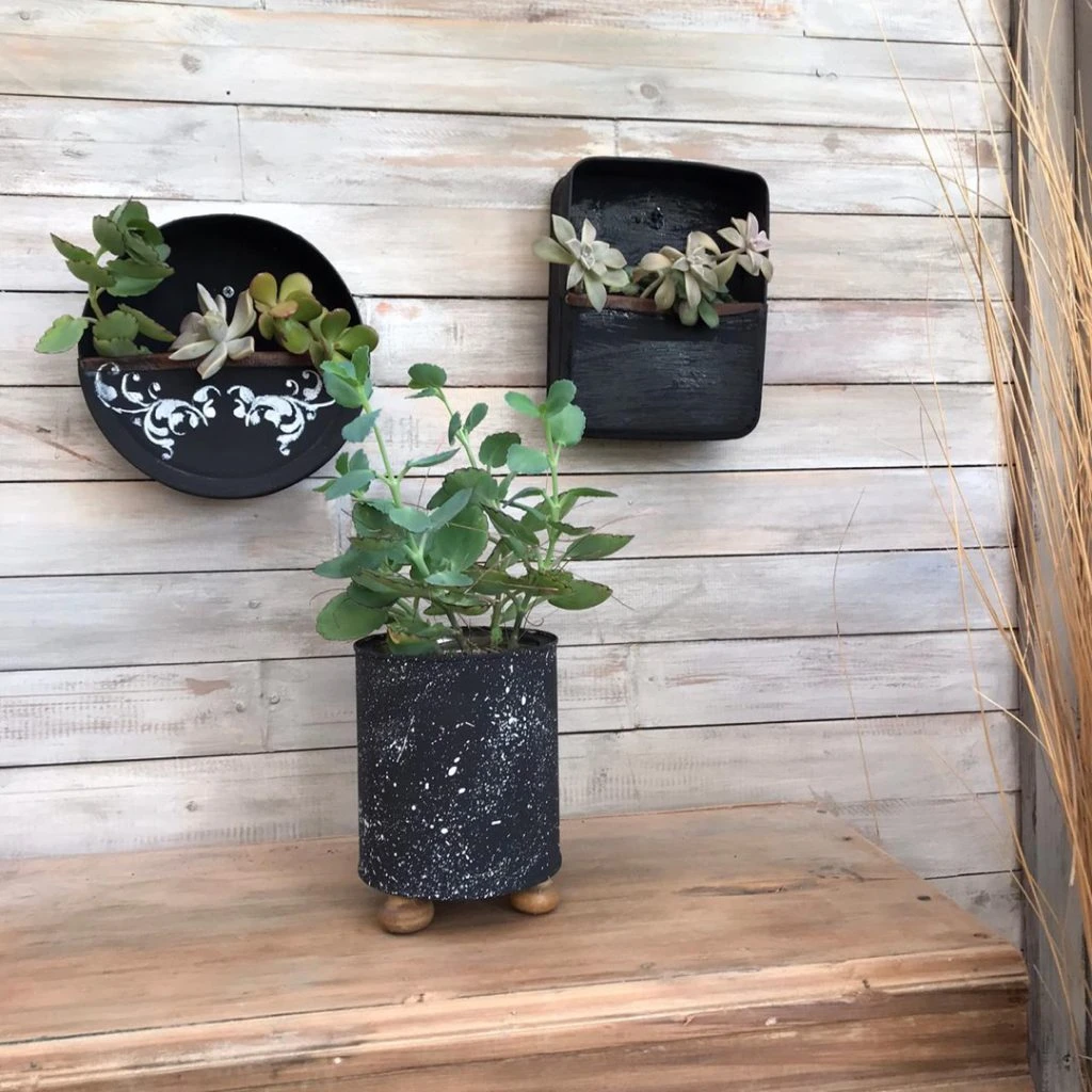 De colgar o de pie, se pintan con látex negro y se les puede hacer un salpicado de blanco que imite la apariencia de un enlosado.