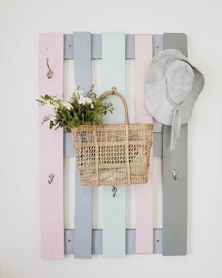 Un pallet viejo, colores pastel atizados y ganchos tipo perchitas de metal fueron suficientes para que Vero Palazzo (#veropalazzo), otra instagramer con geniales propuestas, armara este simpático perchero.