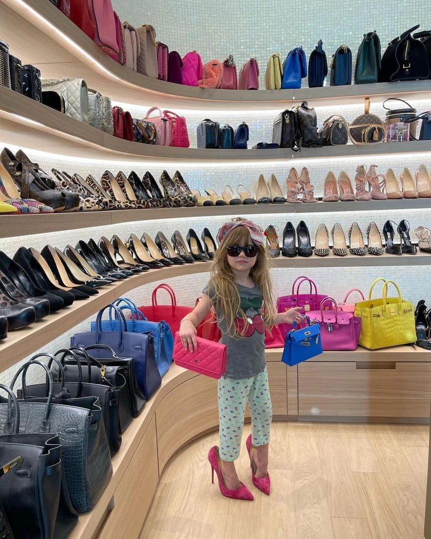 En esta imagen, la nena de 4 años está en el guardarropas de su mamá, jugando a probarse sus "tacos" y todos sus accesorios. Y Wanda recuerda su infancia: "La continuidad .. yo amaba jugar con bolsos de mis abuelas y mama"