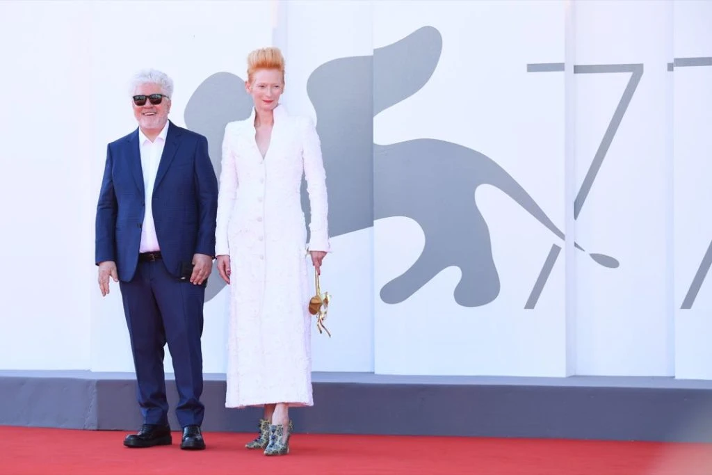 Swinton abrió la Mostra de Cine de Venecia aplaudiendo a la ciudad por conseguir que se celebre el festival de cine en medio de las medidas de seguridad contra el coronavirus. "Viva Venecia, viva el cine y Wakanda Forever", dijo haciendo un emocionado tributo a la memoria de Chadwick Boseman.