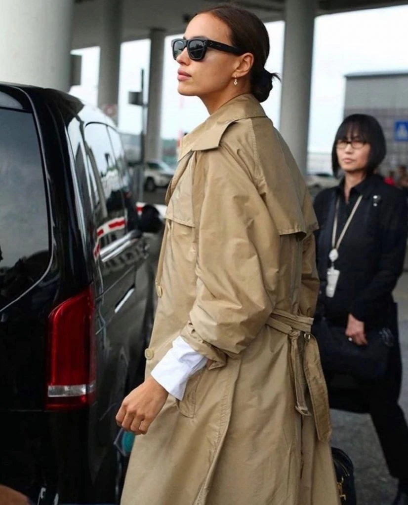 La ex de Cristiano Ronaldo y Bradley Cooper siempre se destaca por sus estilismos. Bajó del avión en el aeropuerto de Milán con un estilo muy canchero, un look working girl para adoptar ya que el trench se convirtió en un básico.